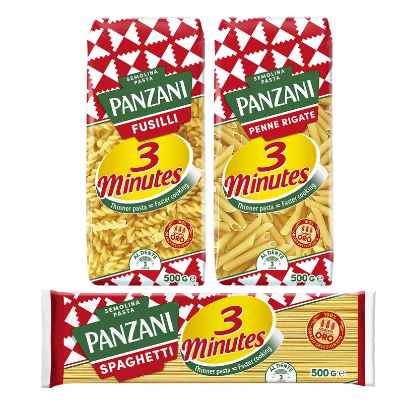 La Panzani, considerăm că, chiar dacă avem la dispoziție mai puțin timp pentru a găti, aceasta nu înseamnă că nu trebuie să mâncăm bine. Din acest motiv, gama noastră 3 MINUTE a fost creată ca alternativă sănătoasă pentru a te ajuta să câștigi timp, fără a schimba nimic din calitatea ingredientelor noastre.